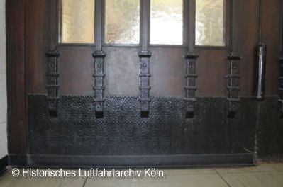 Auch auf diesem Gebäude befindet sich ein Turm. Dieser Turm ist allerdings etwas kleiner als die Türme auf den anderen gebäuden. Wahrscheinlich handelt es ich deshalb um einen Turm auf dem ein Luftbeobachter stationiert war. Im Gebäude befinden sich noch die originalen Türen des Fliegerhorstes. Diese Türen sind noch in einem erstklassigen Zustand. Sow wie die Türen, befindet sich im Gebäude auch noch das originale Treppenhausgeländer. |
