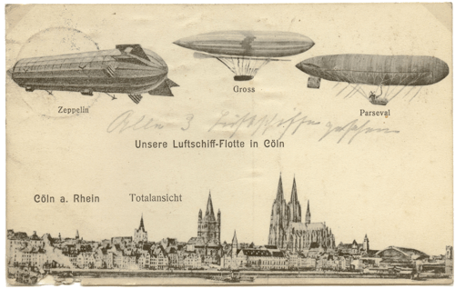 | Die vier Luftschiffe über Köln regten die Phantasie vieler Künstler an. | ||||||||||||||||||||||||||||||||||||||||||||